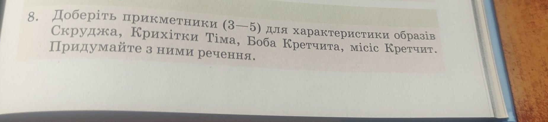 *Речення: Боб Кретчит, хоч і бідний, завжди залишався відданим та оптимістичним в своїй праці.*