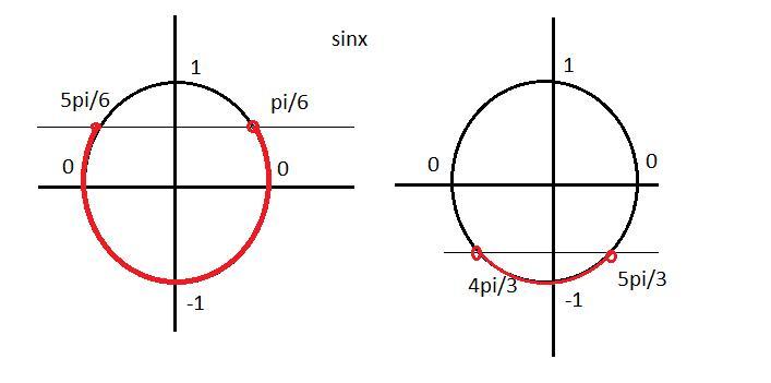 общий ответ x=[pi+2pin; 7pi/3+2pin] n∈Z