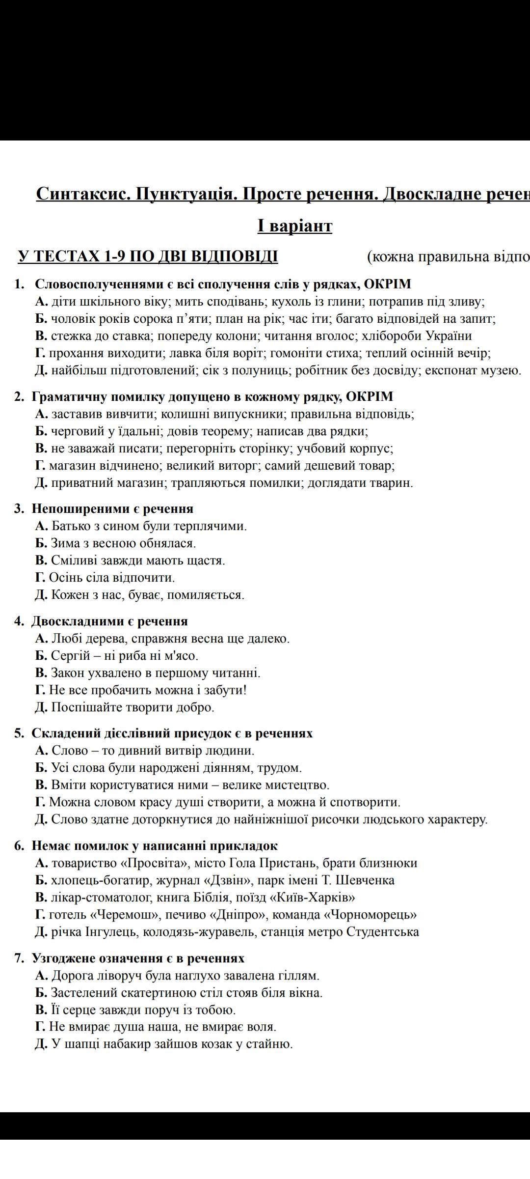 1.В 2 А 3 Г 4 Д 5Г 6 В 7А