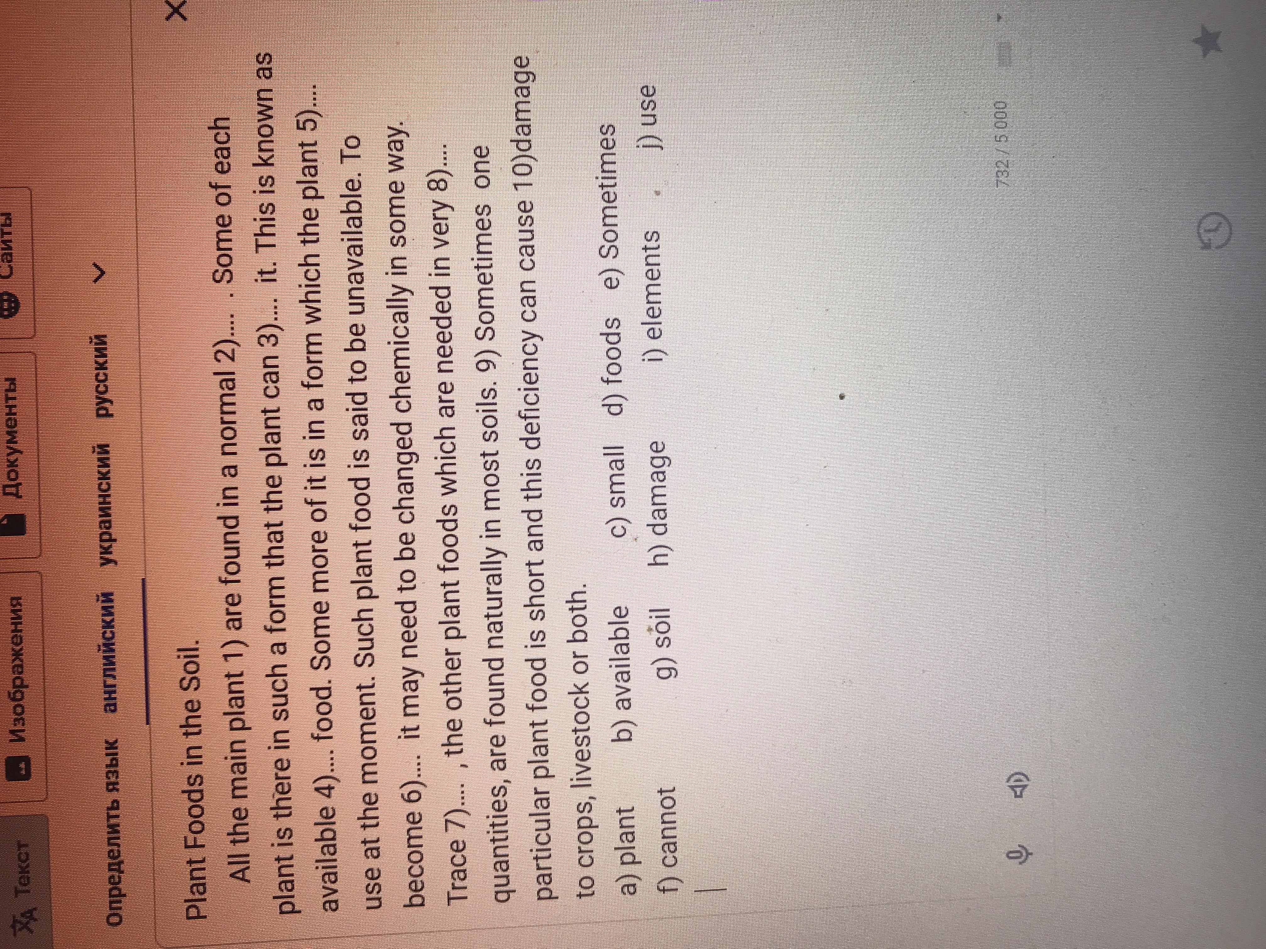 1- plant, 2- soil, 3- use, 4- elements, 5- cannot, 6- foods, 7- available, 8- small, 9- Sometimes, 10- damage.