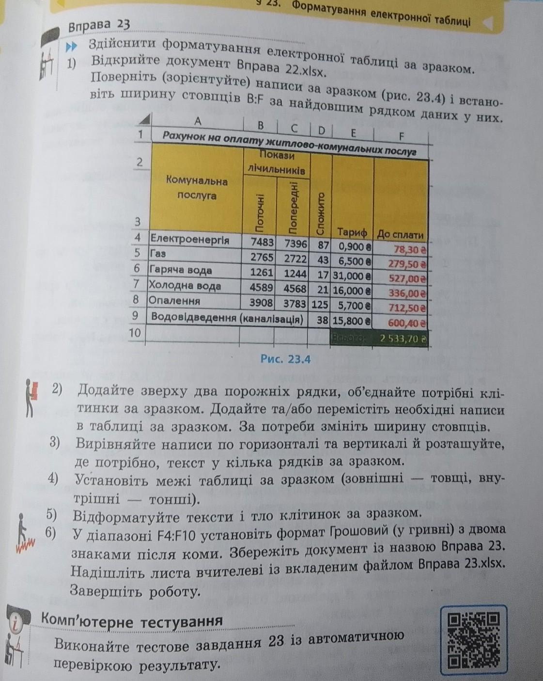 Там написано "Відкрийте документ Вправа 22.xlsx" та змінити його