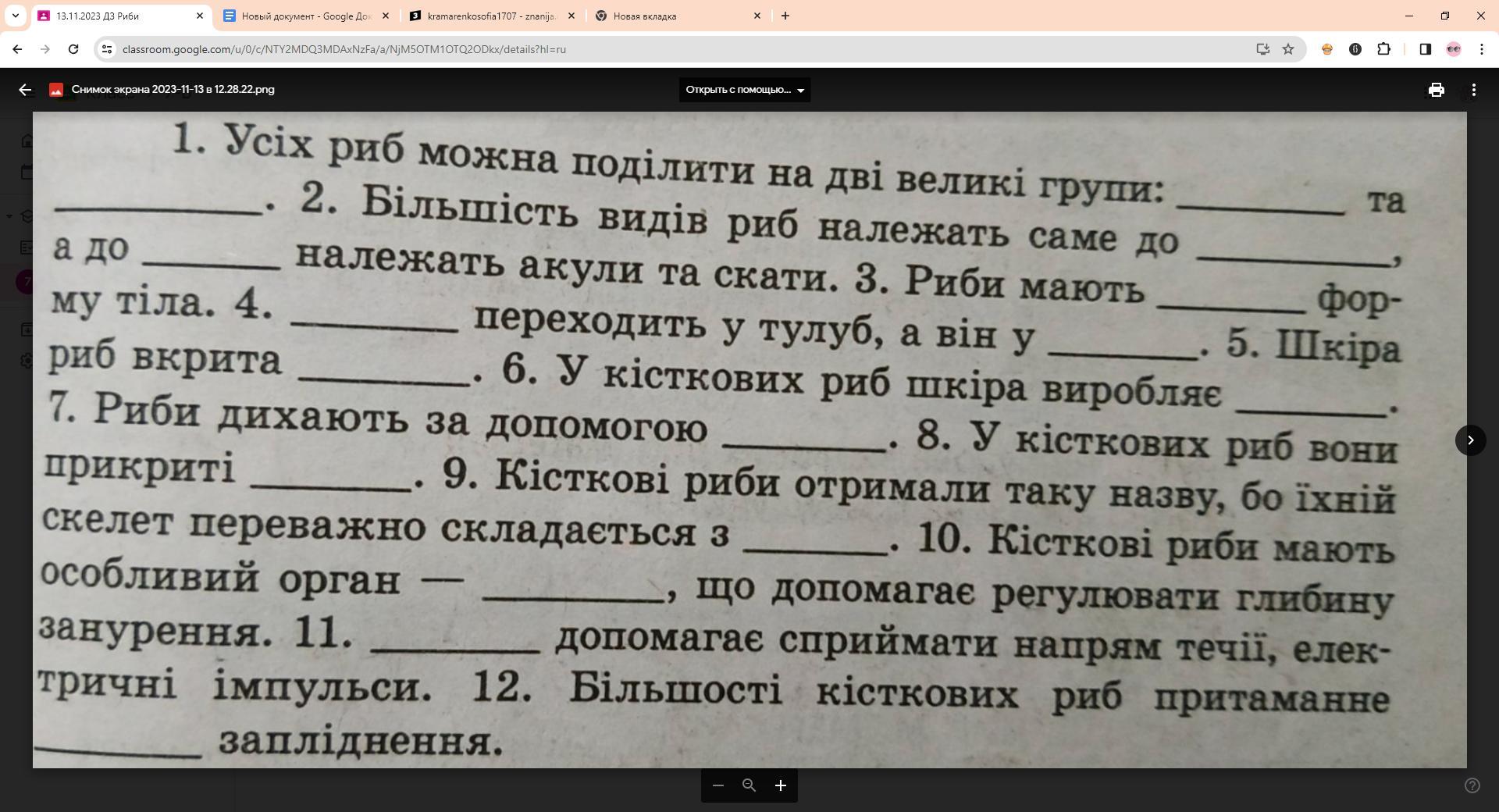 Відповідь: Усіх риб можна поділити на дві великі групи: кісткові та хрящові. Більшість видів риб належить саме до кісткових, а до хрящових належать акули та скати. Риби мають обтічну форму тіла. Голова переходить у тулуб, а він у хвіст. Шкіра риб вкрита лускою. У кісткових риб шкіра виробляє слиз. Риби дихають за допомогою зябер. У кісткових риб вони покриті зябровими кришками. Кісткові риби отримали таку назву, бо їхній скелет переважно складається з кісткової тканини. Кісткові риби мають особливий орган – плавальний міхур, що допомагає регулювати глибину занурення. Бічна лінія допомагає сприймати напрям течії, електричні імпульси. Більшості кісткових риб притаманне зовнішнє запліднення.