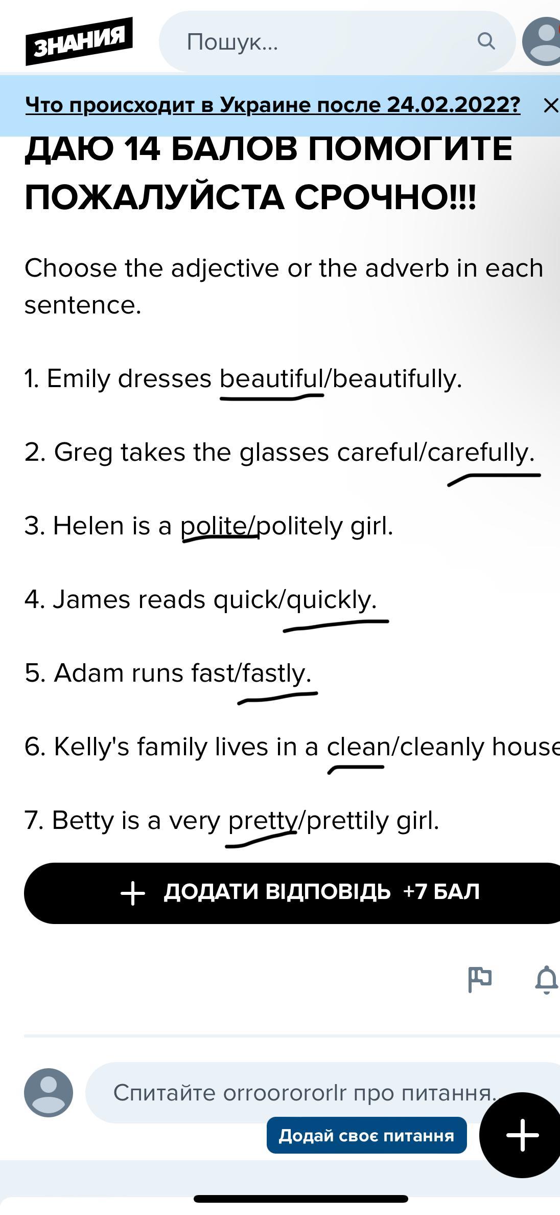 5. Adam runs fast/fastly.