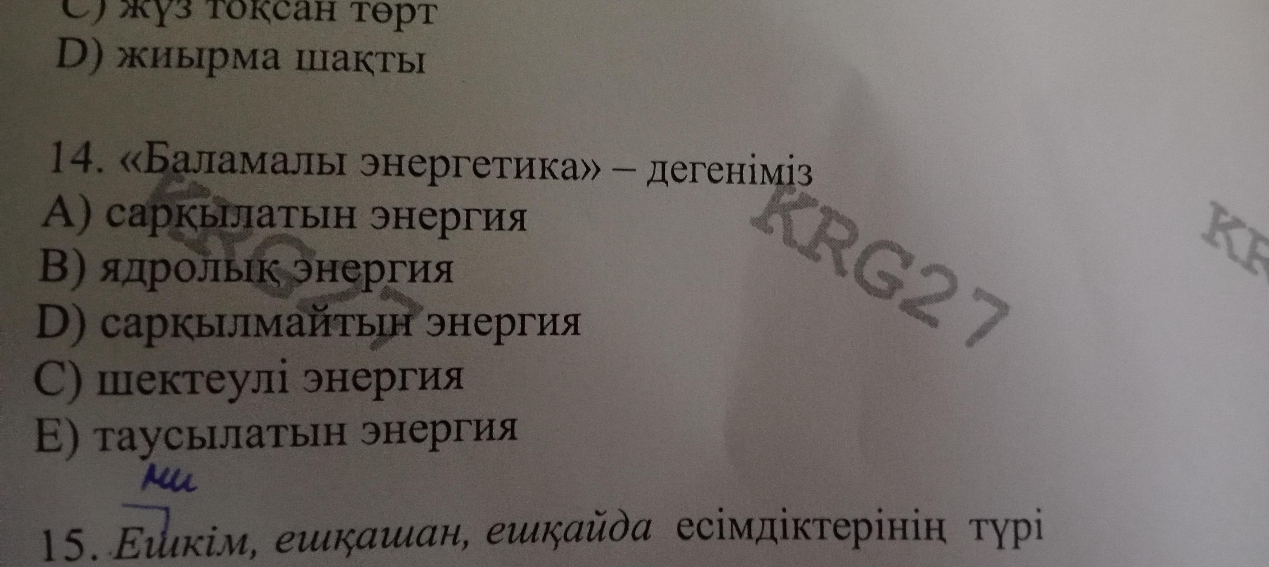 14)Баламалы энергия дегеніміз сарқылмайтын энергия