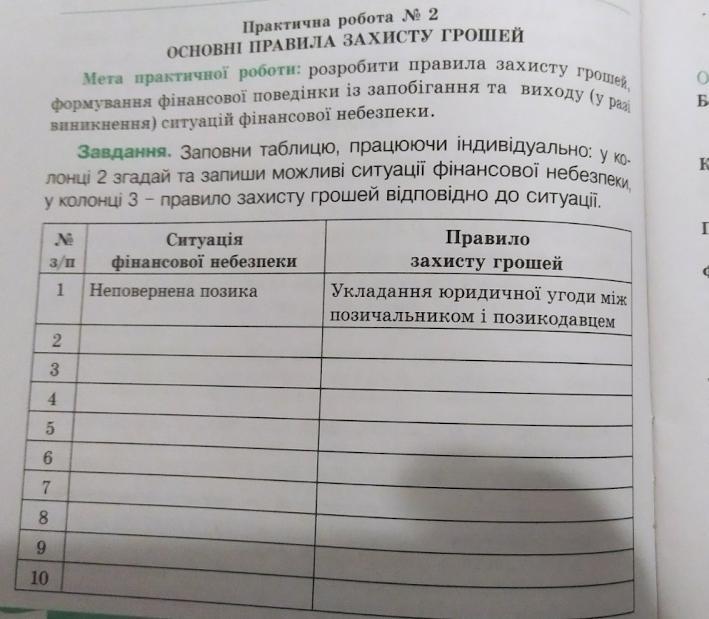 N | Ситуація фінансової небезпеки | Правило захисту грошей