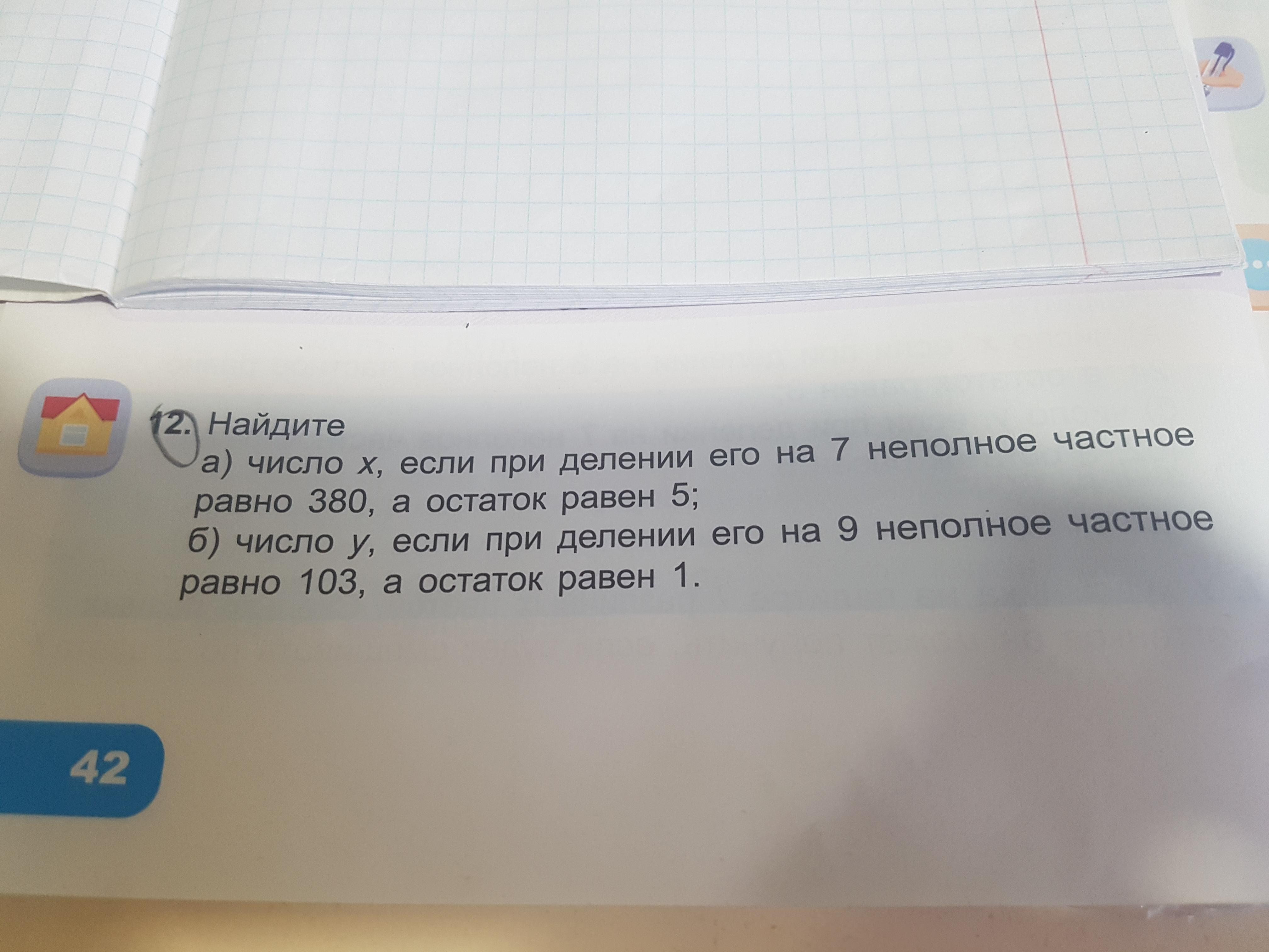 а) чтобы найти х нужно 380 умножить на 7 и добавить остаток, то есть 5. В результате получим, что х равен 2665