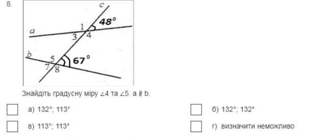БУДЬ ЛАСКА ДОПОМОЖІТЬ ДАЮ 10 БАЛІВ 8. а 67° 48° Знайдіть градусну міру 24 та 25. а н ь. a) 132°; 113° B) 113°; 113° 6) 132°; 132° г) визначити неможливо