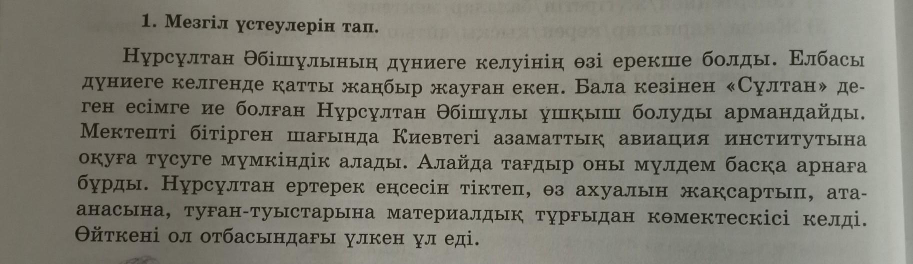 " 4. Елбасының балалық шағы» мәтінінде орын алған құндылықтарды аныктап, белгiле. Мәтіндегі сөйлемдерді пікіріңдi негiздеуде пайдалан. 1) Береке 2) Достық 3) Татулық 4) Ултжандылық 5) Еңбекқорлық 6) Мейірімділік 7) Қамқорлық 8) Құрмет 9) Дәстүр