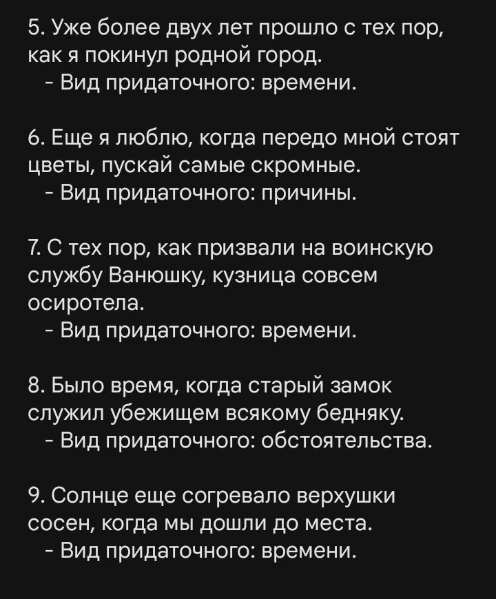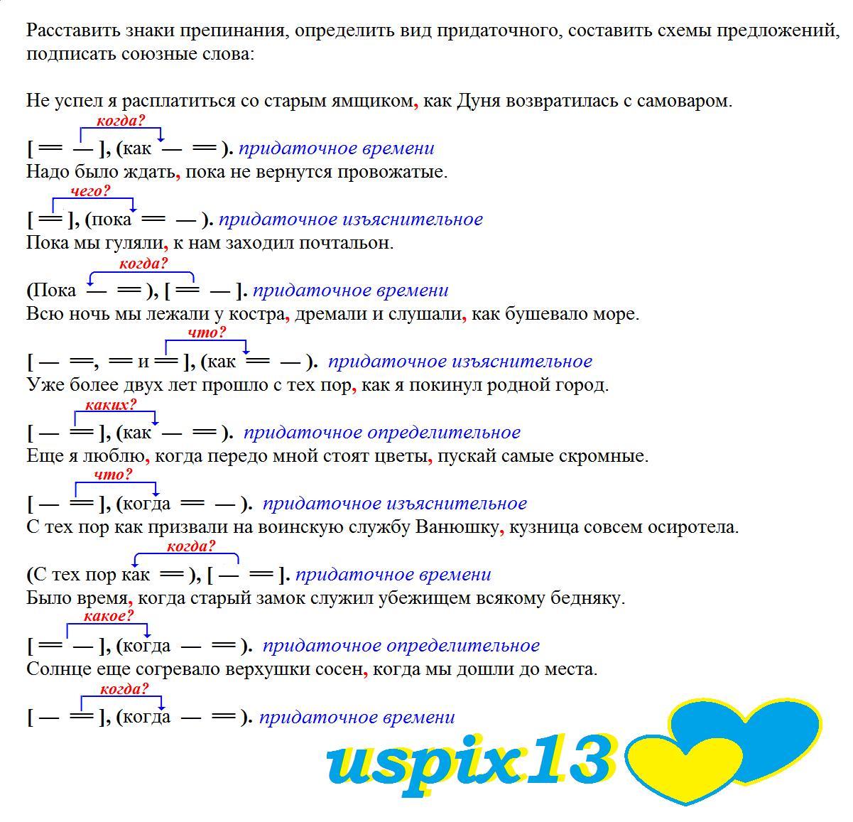 расставить знаки препинания, определить вид придаточного, составить схемы предложений, подписать союзные слова: