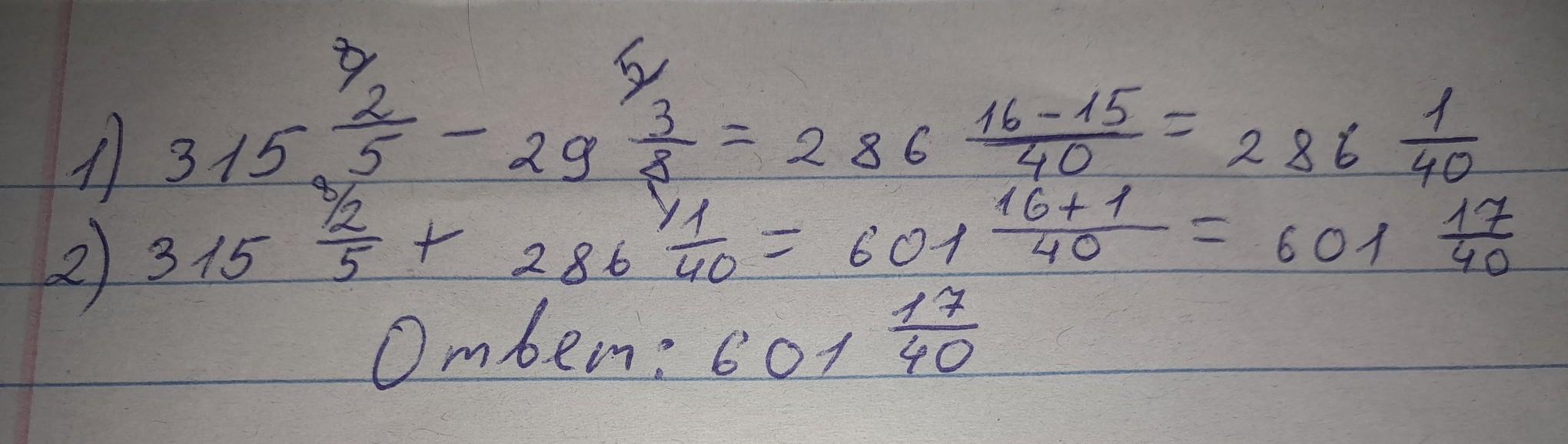 В первый день на склад завезли 315 ⅖ и товара, а во второй день на 29 ⅜ т меньше. Сколько тонн товара завезли на склад за 2 дня?