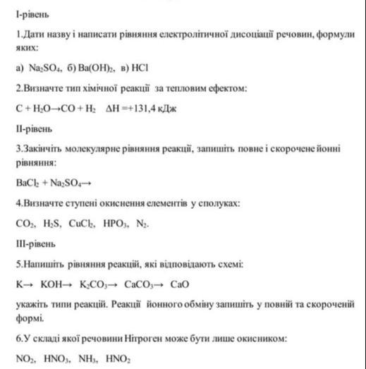 1. Назви речовин та їх електролітичні рівняння дисоціації: