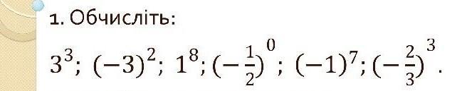 3³=27;(-3)²=9;1⁸=1;(-1/2)⁰=-1;(-1)⁷=-1;(-2/3)³=-8/27