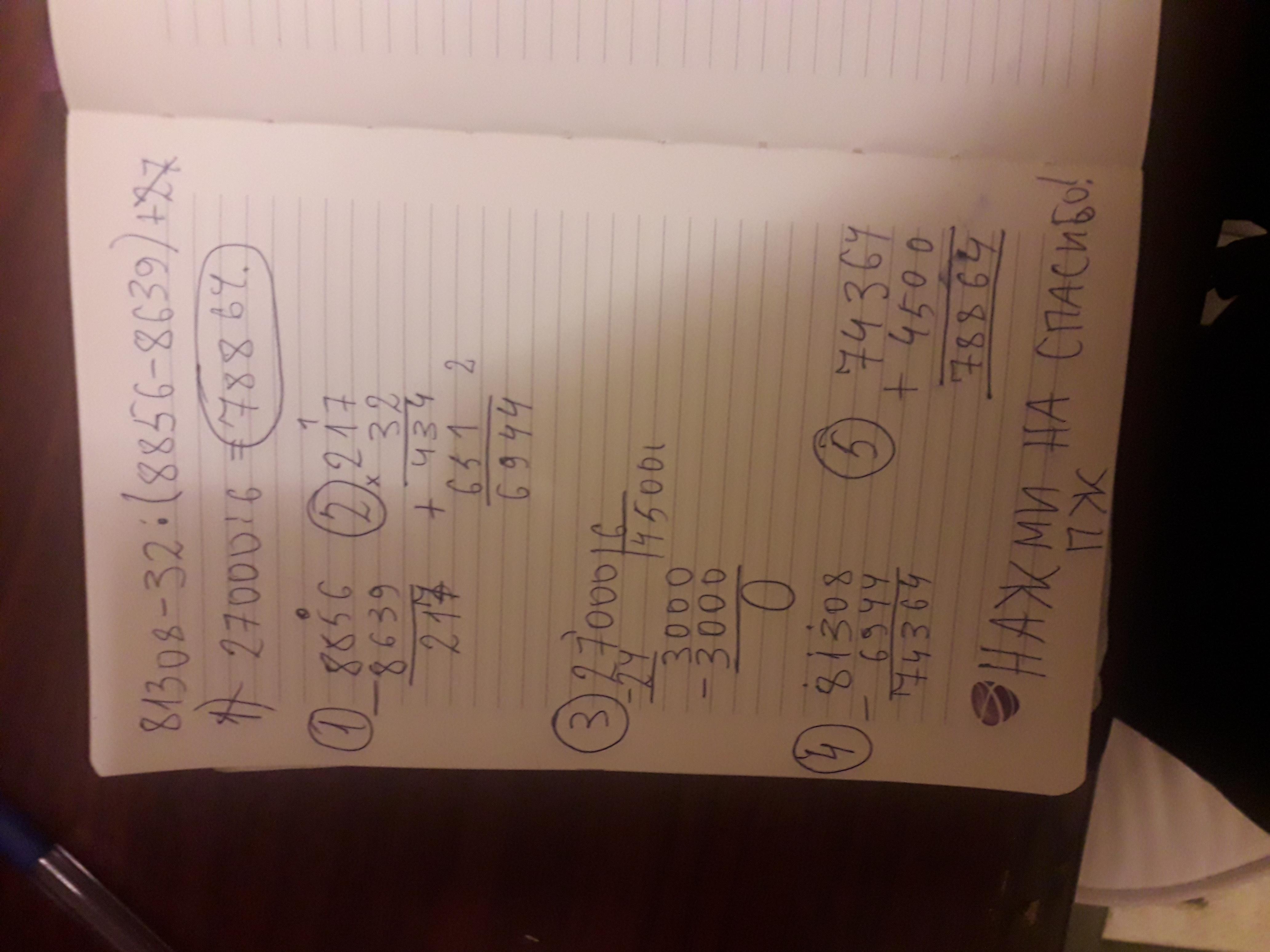 Ответ: 81 308-32*(8856-8639)+27 000:6 = 78864 нажми на спасибо и на корону пожалуйста у меня всё столбиком даже!