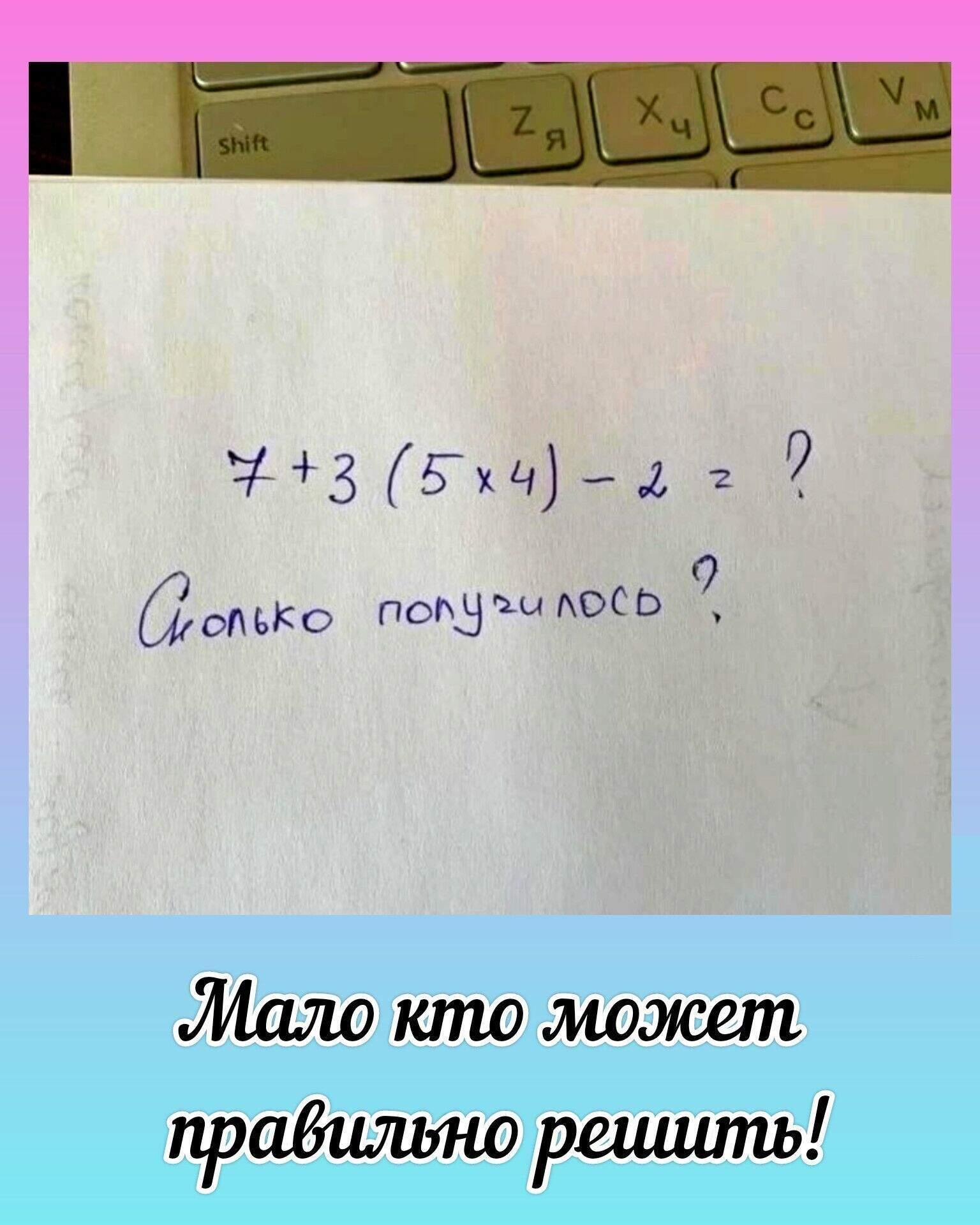 первым делом умножение посто 7+3 потом уже -2 и того=28