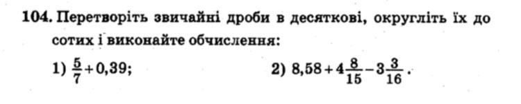 Срочно потрібно звичайні дроби перетворити в десяткові потім округлити до сотих і обчислити два приклади все на картинці