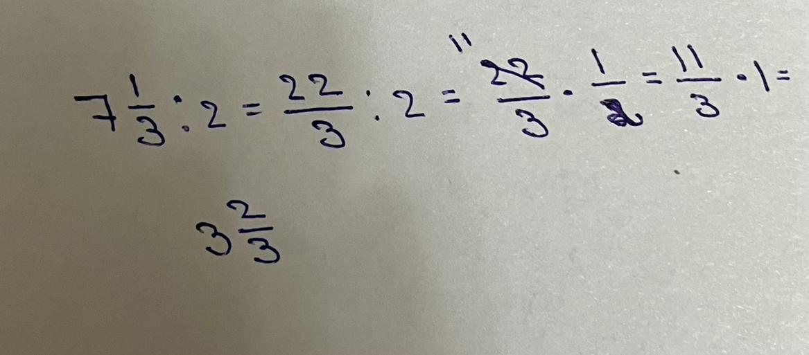 Ps 7 1/3:2=22/3:2=11/3=3 1/3