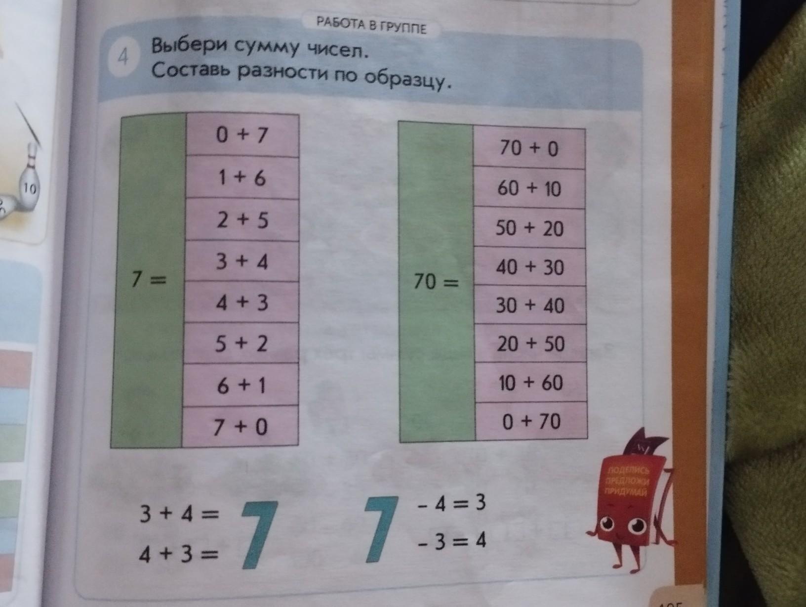 Для 7: 1 +6 =7 7 - 6=1