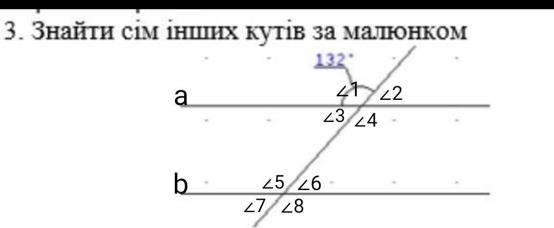 3. Знайти сім інших кутів за малюнком