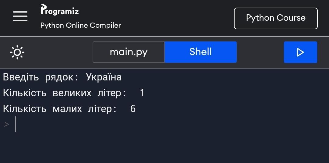 Напишіть алгоритм розв’язку задачі та надішліть в щоденник “Визначити кількість великих та малих літер у рядку”