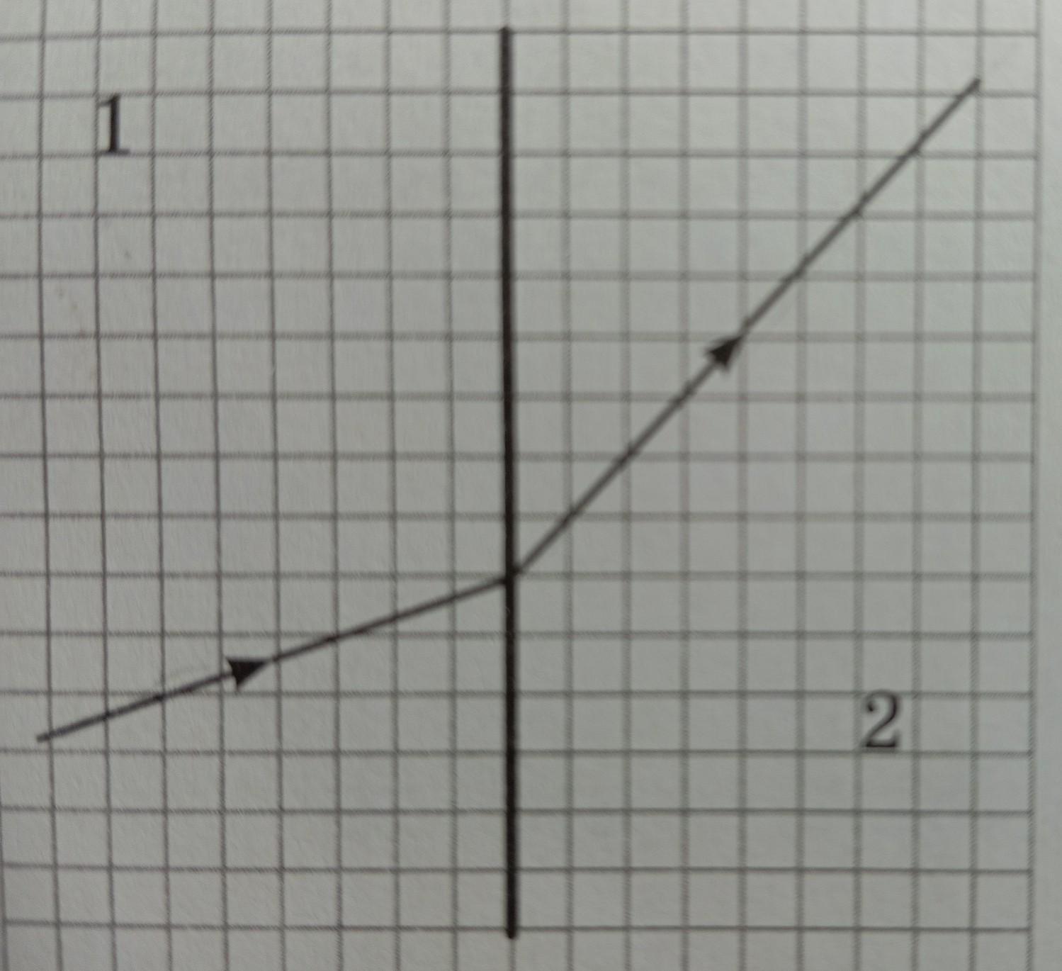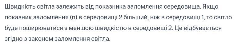 Світловий промінь переходить із середовища 1 у середовище 2. У якому середовищі світло поширюється з меншою швидкістю? Поясни свою відповідь.