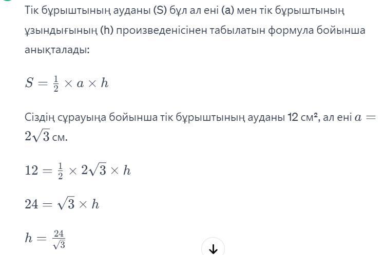 Тік бұрыштының ауданы (S) бұл ал ені (a) мен тік бұрыштының ұзындығының (h) произведенісінен табылатын формула бойынша анықталады: