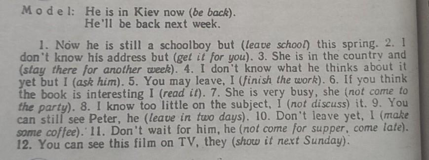 Complete the following sentences, using the Future Indefinite Tense according to the model.