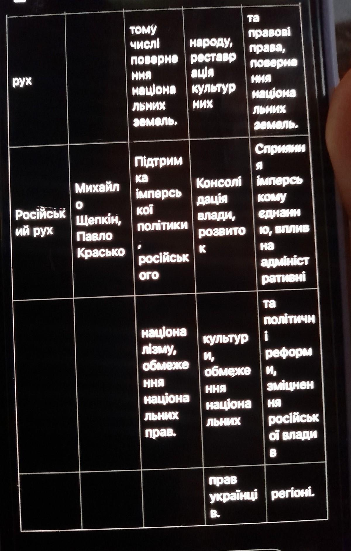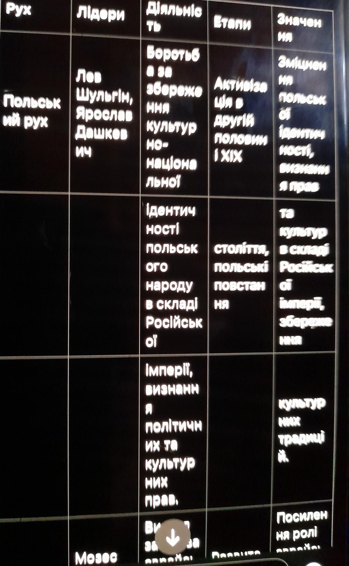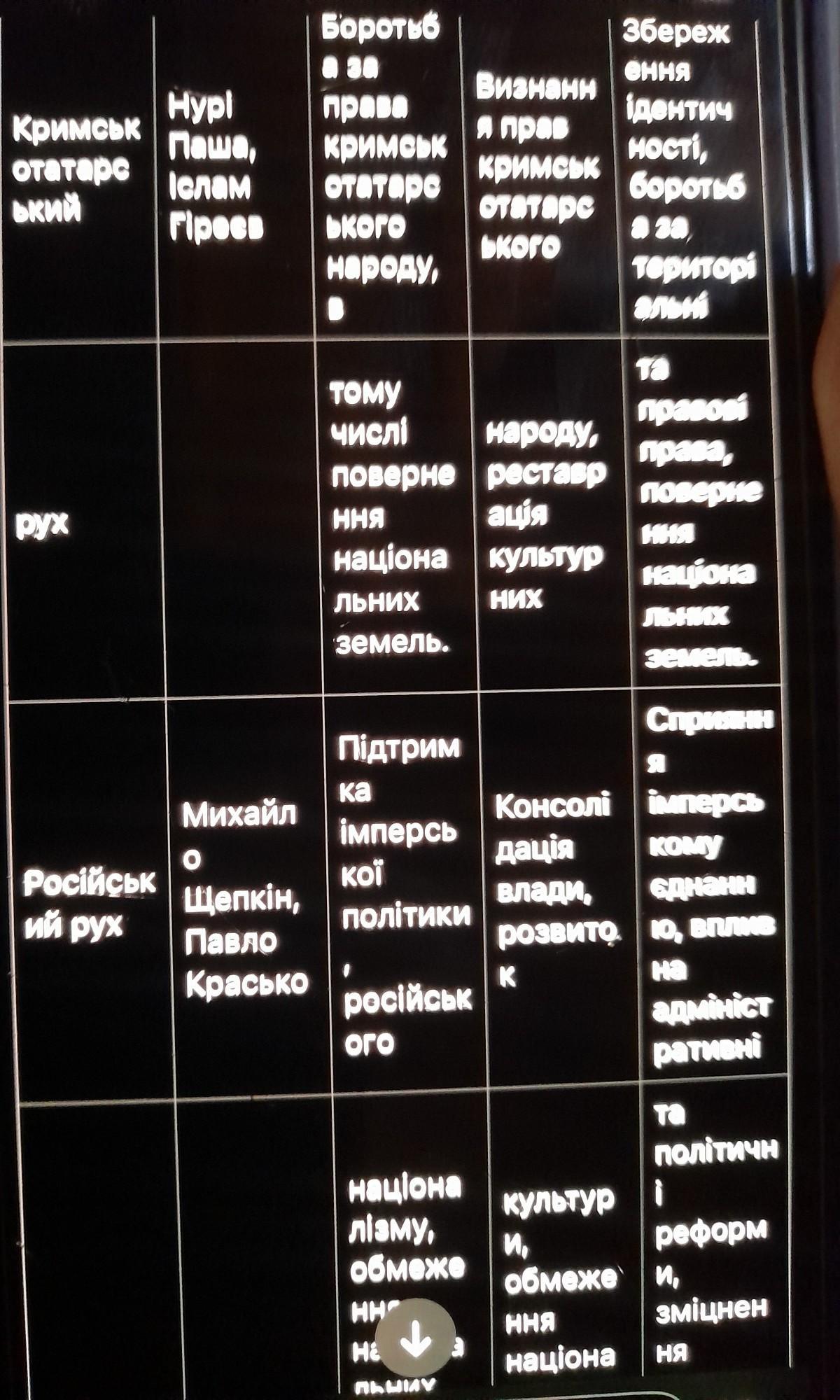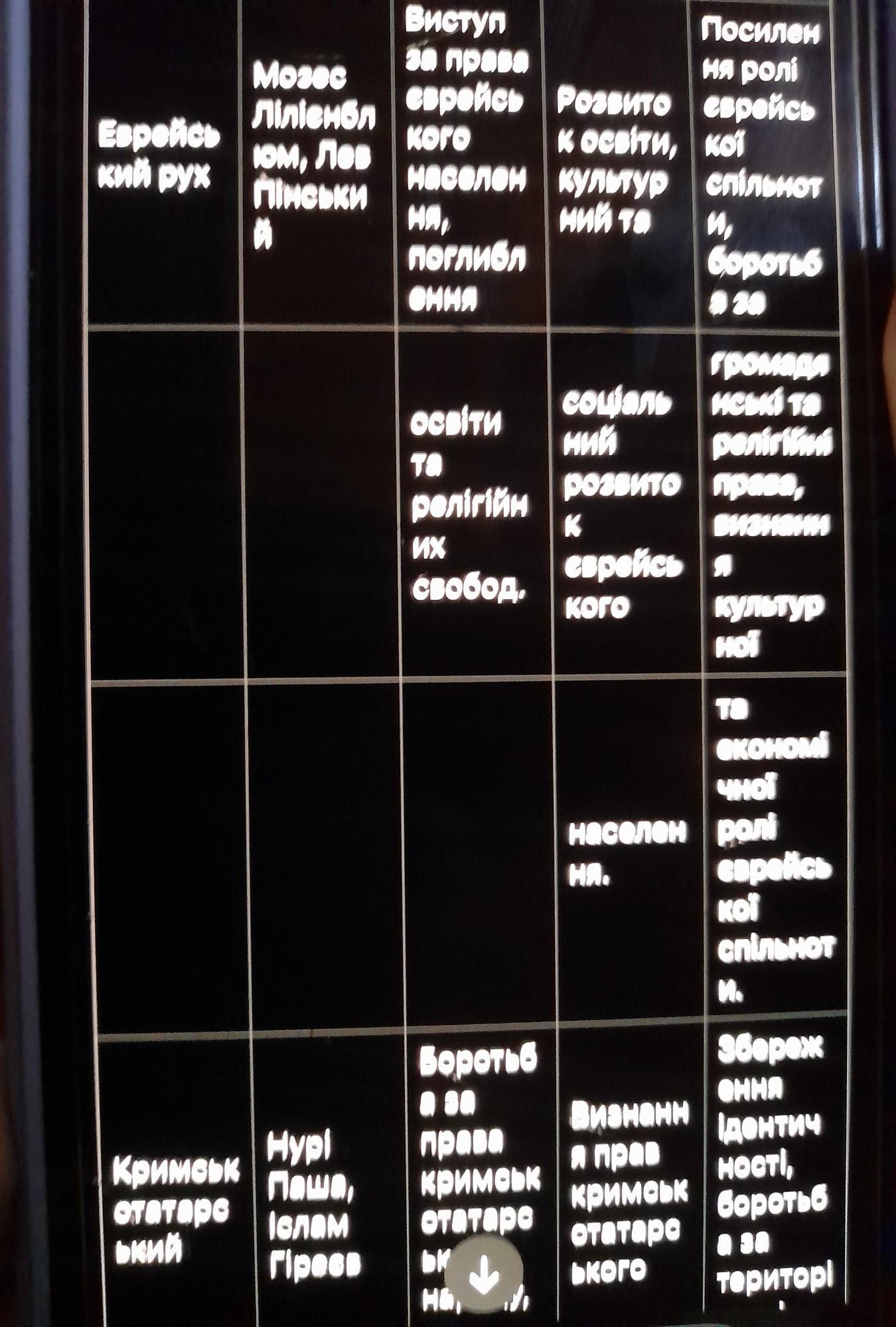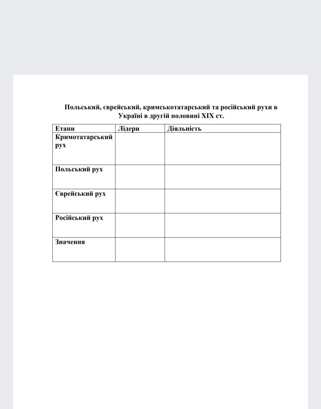 Заповніть табличку "Польський, єврейський, кримськотатарський та російський рухи в Україні в другій половині ХІХ ст."