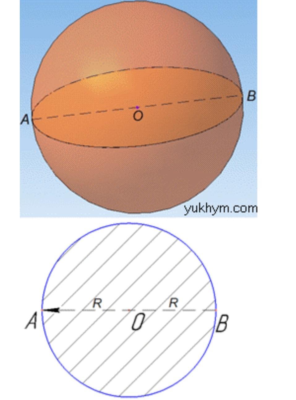 великий круг проходить через діаметр кулі. Центр великого круга це центр кулі.