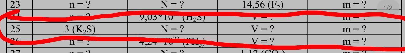 Зделайте пожалуйста задание под номером 25 сне ОЧЕНЬ СРОЧНО НУЖНО 3 (K2S) N = ? V = ? m = ?