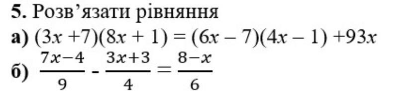 Спростіть вираз (х+2)(х+4)-(х+1)(х+5). Розвʼяжіть рівняння: (3х+7)(8х+1)=(6х-7)(4х-1)+93х. Срочно пожалуйста, даю 45б.)