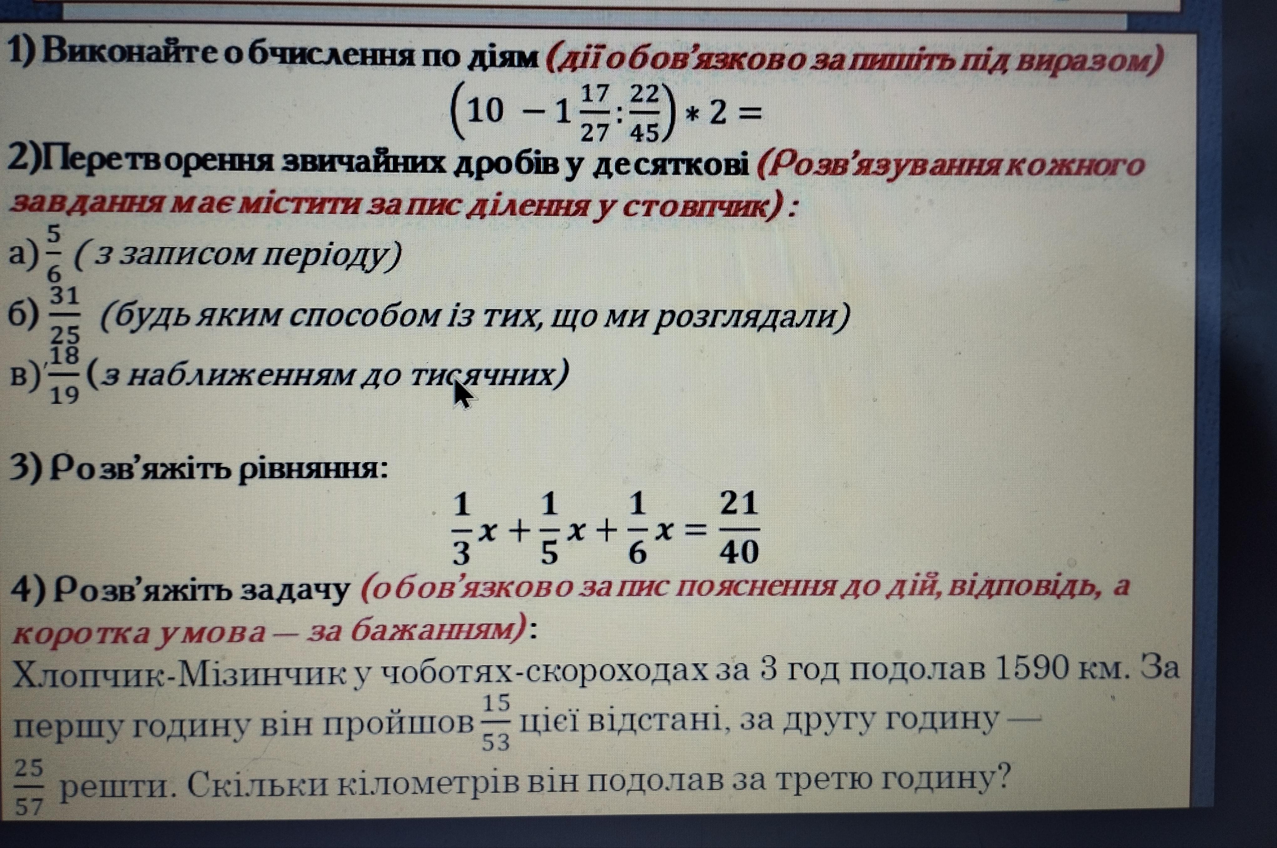 1)5/6=5÷6=0,8(3) (три у періоді, воно безкінечне, скільки разів не діли та не добавляй нуль, всеодно буде 20)