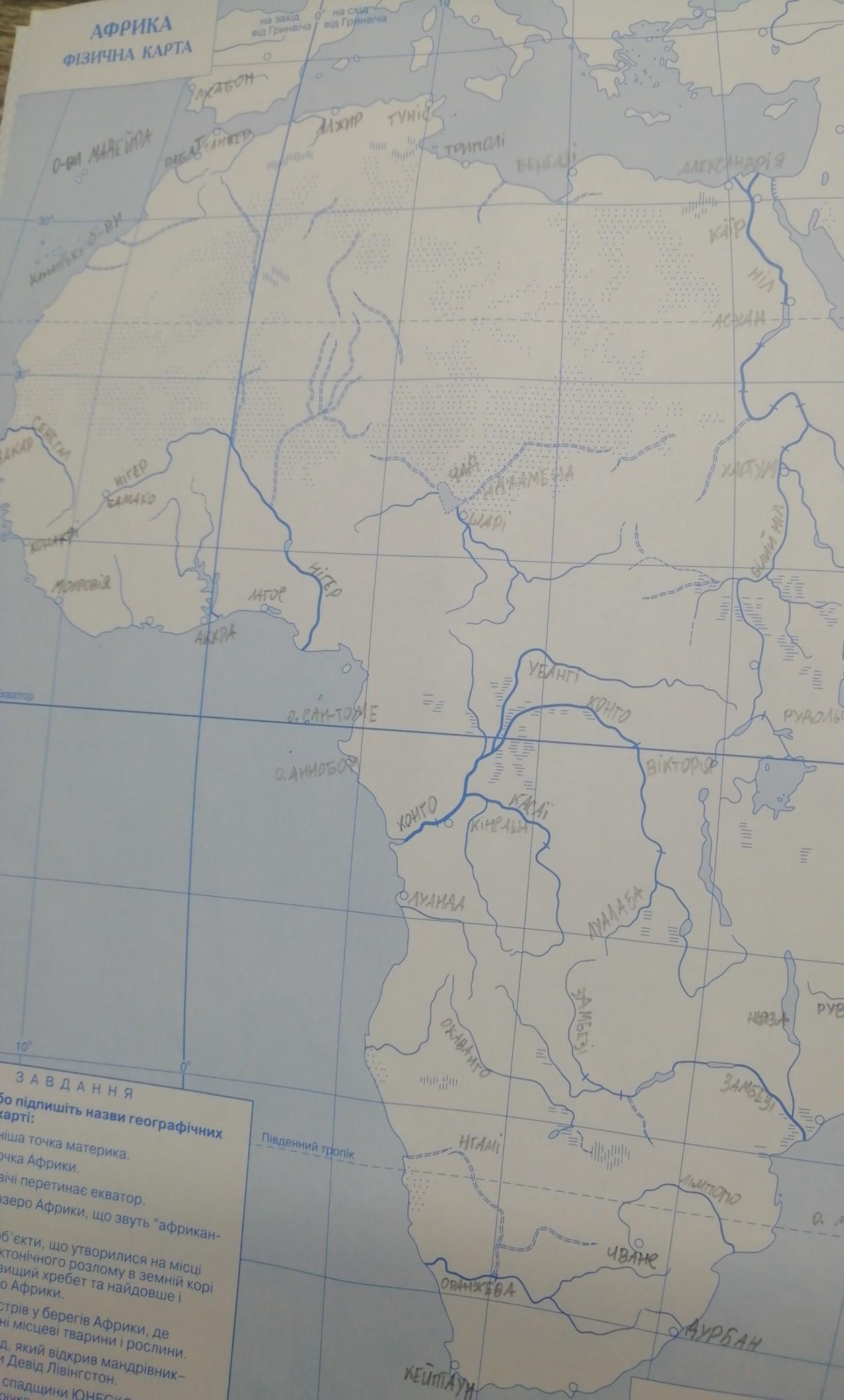ДАЮ 50 БАЛІВ ЗА ХОРОШУ ВІДПОВІДЬ!!!!!!!!!!Поможіть!! Контурна карта 7 клас,потрібно зробити Фізичну Карту Африки,по завданням внизу в куточку,та підписати всі океани ,крайні точки ,короче все що там задано)НАДІСЛАТИ ФОТО,та якщо можете розмалювати її)))))