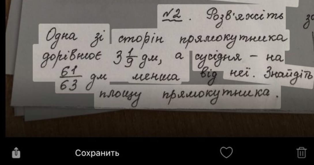 Дано: abcd – прямокутник, а = 3 1/9 дм, b = a - 61/63 дм.