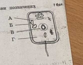 Розв'яжіть задачу. 14. Розгляньте малюнок прокаріотичної клітини і підпишіть назви позначених структур.