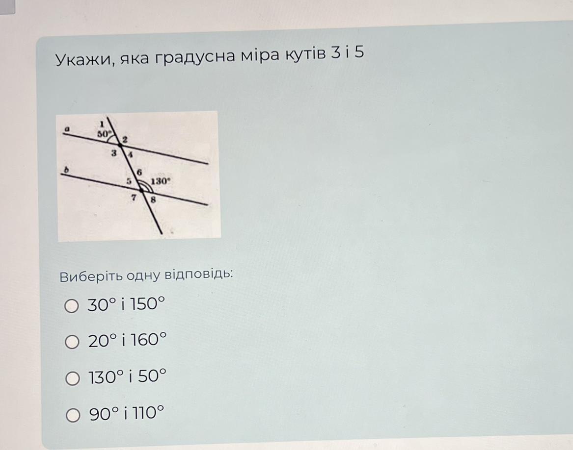 130 і 50 тому що кут 3 і 5 суміжні чи якось так називається