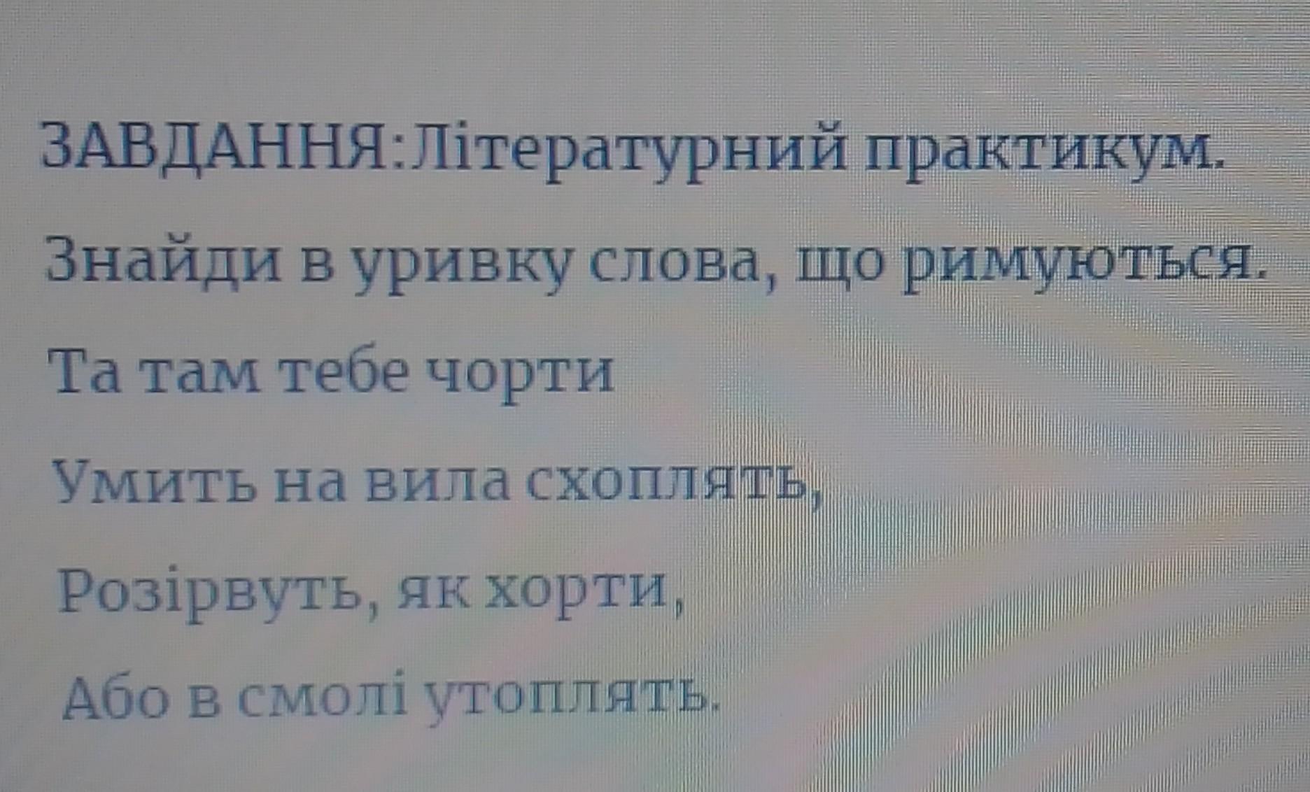 ЗАВДАННЯ:Літературний практикум. Знайди в уривку слова, що римуються.