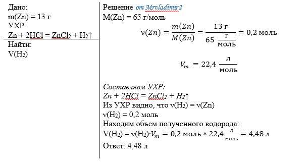 n(Zn):n(H2). n(Zn)=n(H2)=0,2моль.