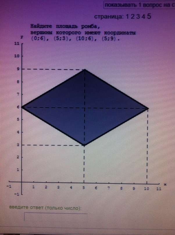 Помогите) Найдите площадь ромба, вершины которого имеют координаты (0;6), (5;3), (10;6), (5;9).