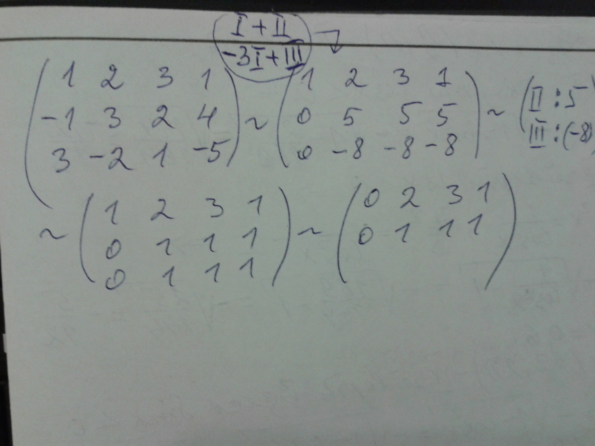 2. При приведении матрицы к ступенчатому виду остаётся 2 строчки, значит 2 линейно-независ. строки у матрицы. См. вложение