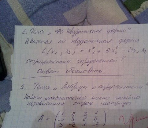 Матрица квадратичной формы: ![left[begin{array}{ccc}1&-1\-1&9\end{array}right] left[begin{array}{ccc}1&-1\-1&9\end{array}right]](https://tex.z-dn.net/?f=++left%5Bbegin%7Barray%7D%7Bccc%7D1%26amp%3B-1%5C-1%26amp%3B9%5Cend%7Barray%7Dright%5D+)