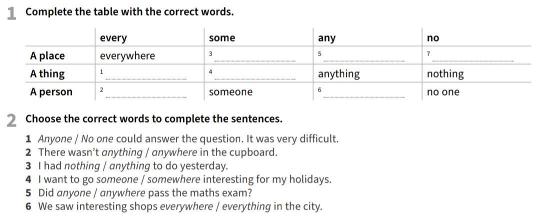 Объяснение:1. Somewhere, anywhere, nowhere.