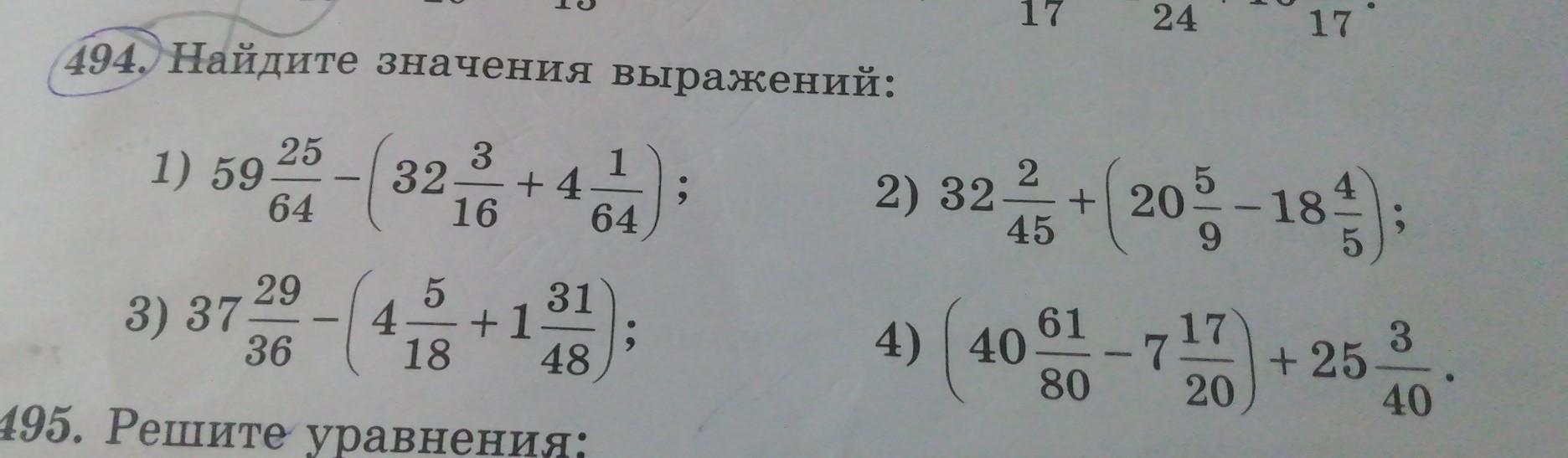 1) 40 61/80 - 7 17/20 = 40 61/80 - 7 68/80 = 39 141/80 - 7 68/80 = 32 73/80