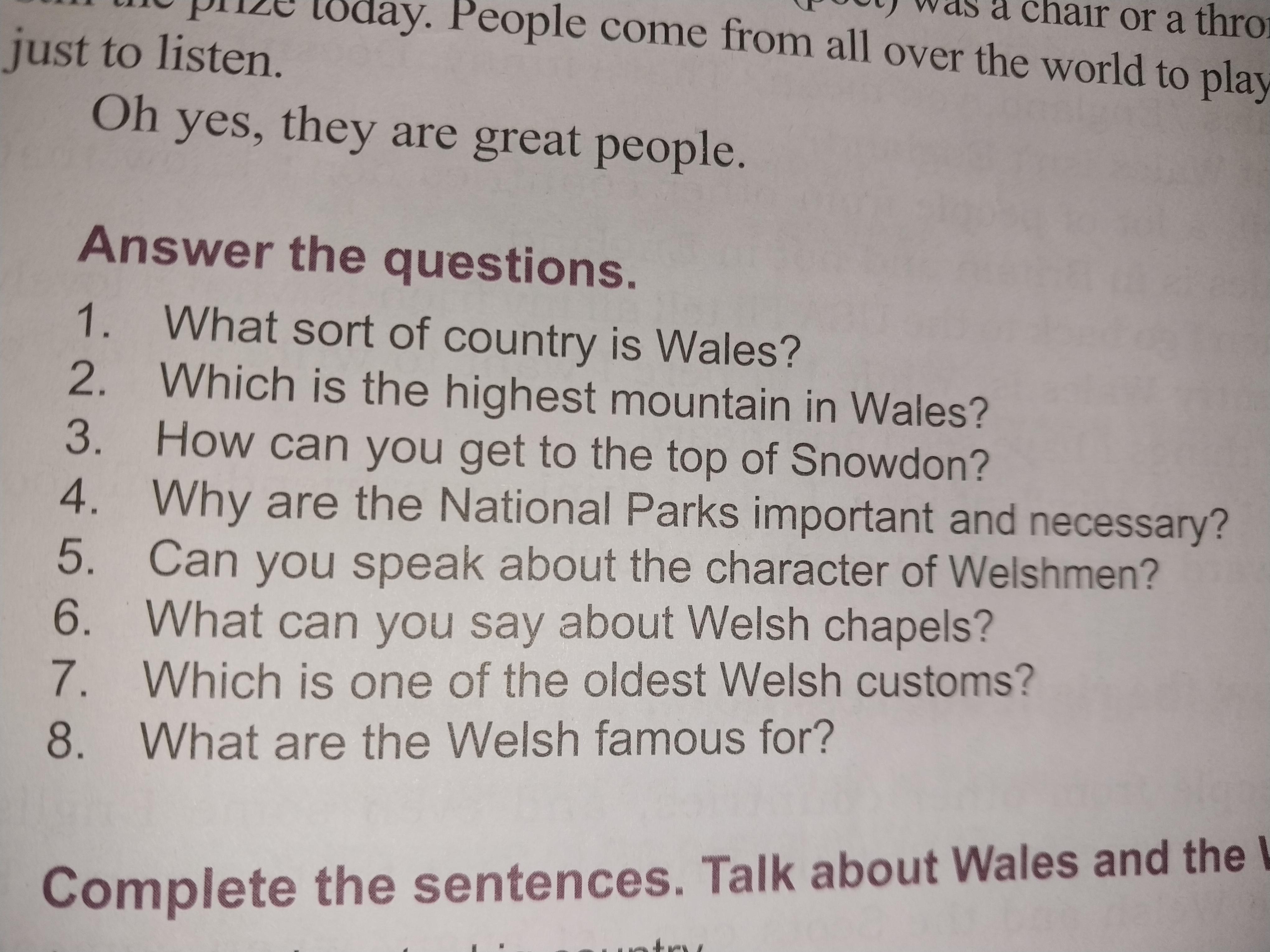 1) Wales is one of the four countries that make up the United Kingdom of Great Britain and Northern Ireland.