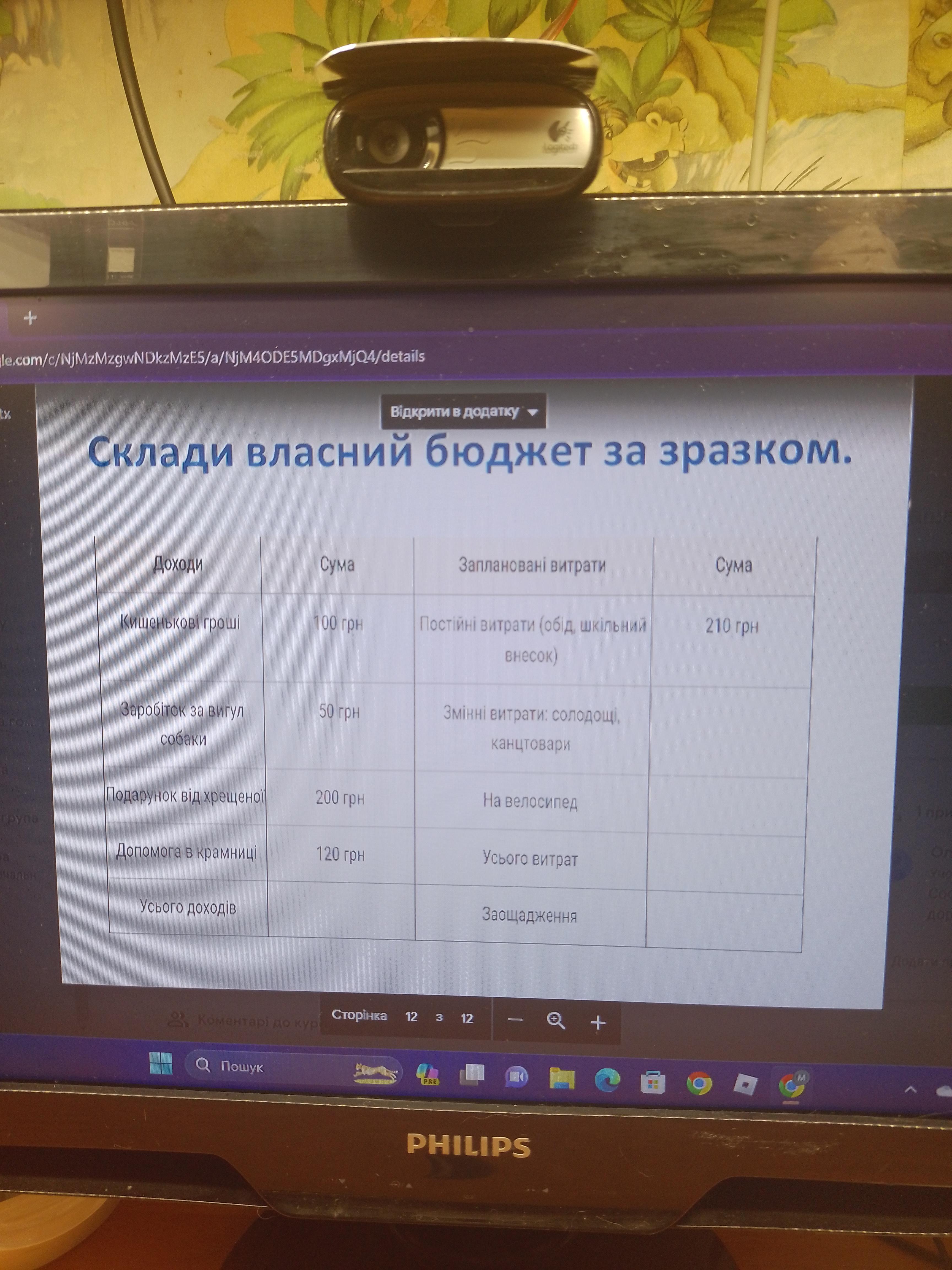 приклад: змінні витрати: 40 грн на велосипед відклали всі 200 грн, усього витрат: 210+200+40= 450, а решту на заощадження