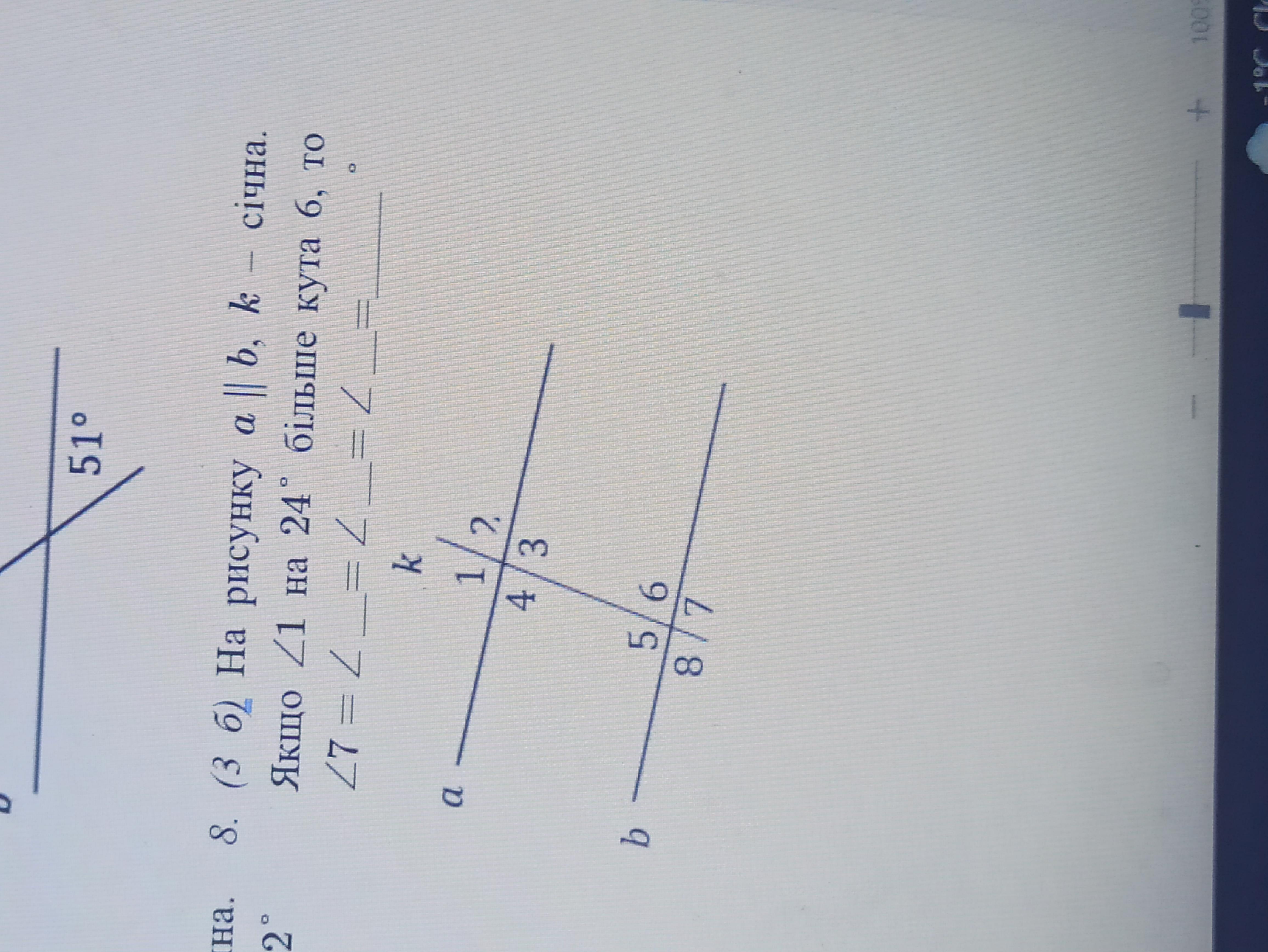 якщо а та б паралельні, то кут1 +кут 6 = 180 (розгорнутий кут). Тоді кут1 =х+24 а кут 6 = х
