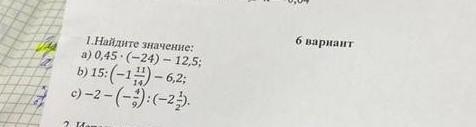 В 1.Найдите значение: a) 0,45 (24)- 12,5; b) 15:(-1)-6,2; c)-2-(-3): (-23).
