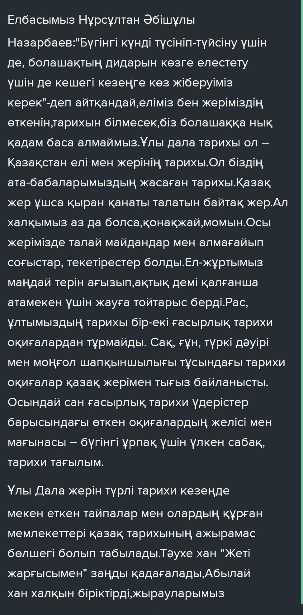 "Тарихта терең ізі бар" деген тақырып-та дастан идеясын ғаламдық тұрғыда талдап, 120 сөзге әдеби эссе жазып беріңдерші.