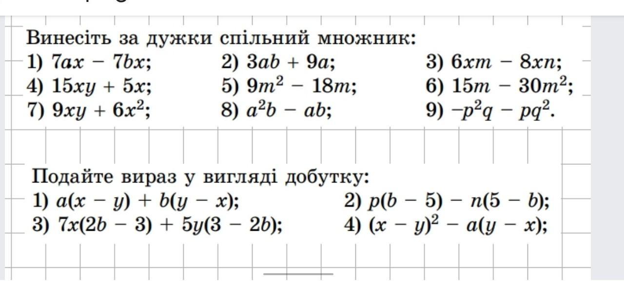 1) 7ax - 7bx = 7x ( a - b )