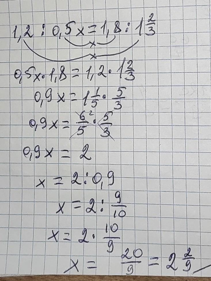 1,2 : (0,5х) = 1,8 : 1 2/3