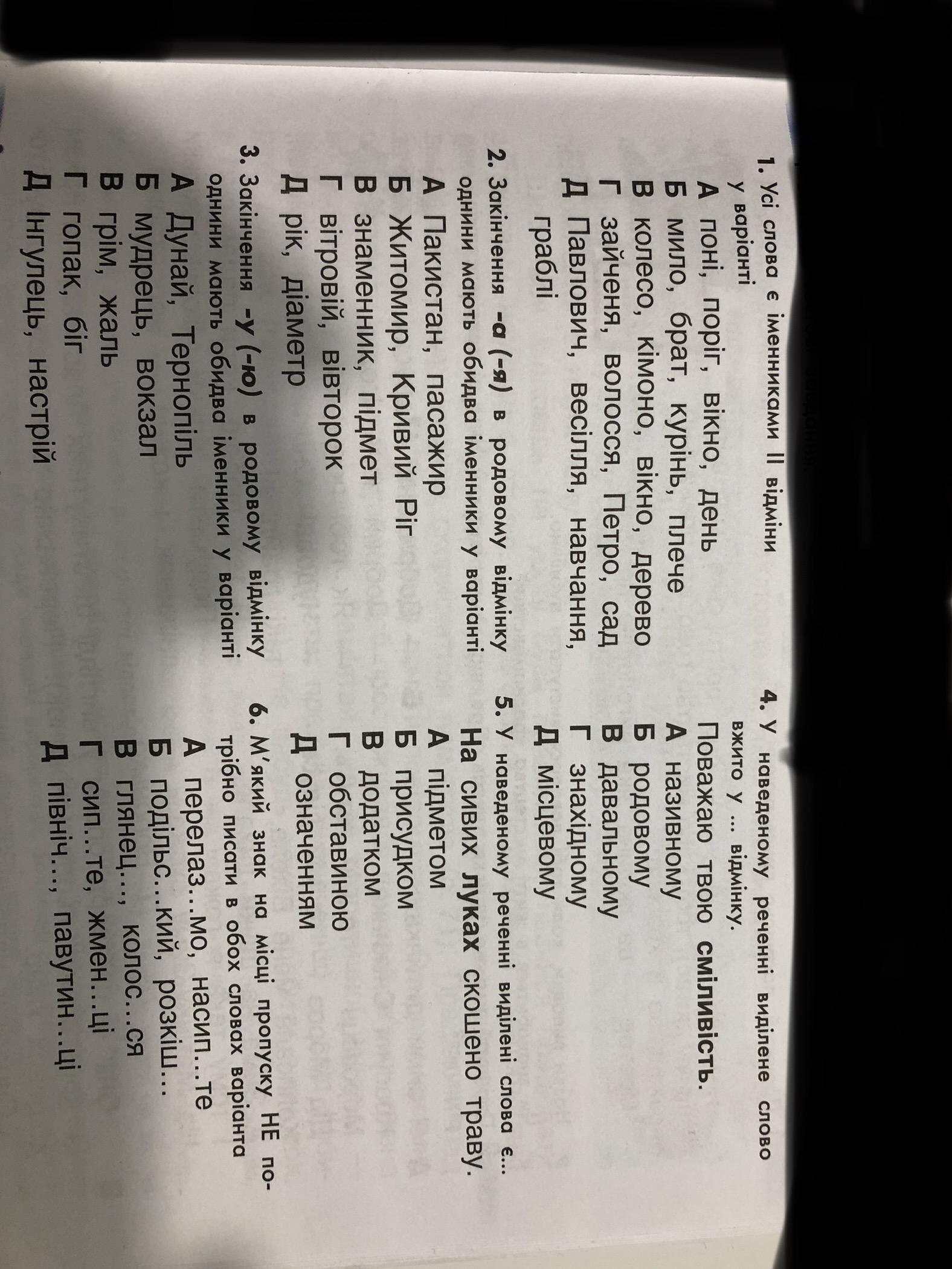 3.Закінчення -у (-ю) в родовому відмінку однини мають обидва іменники у варіанті.